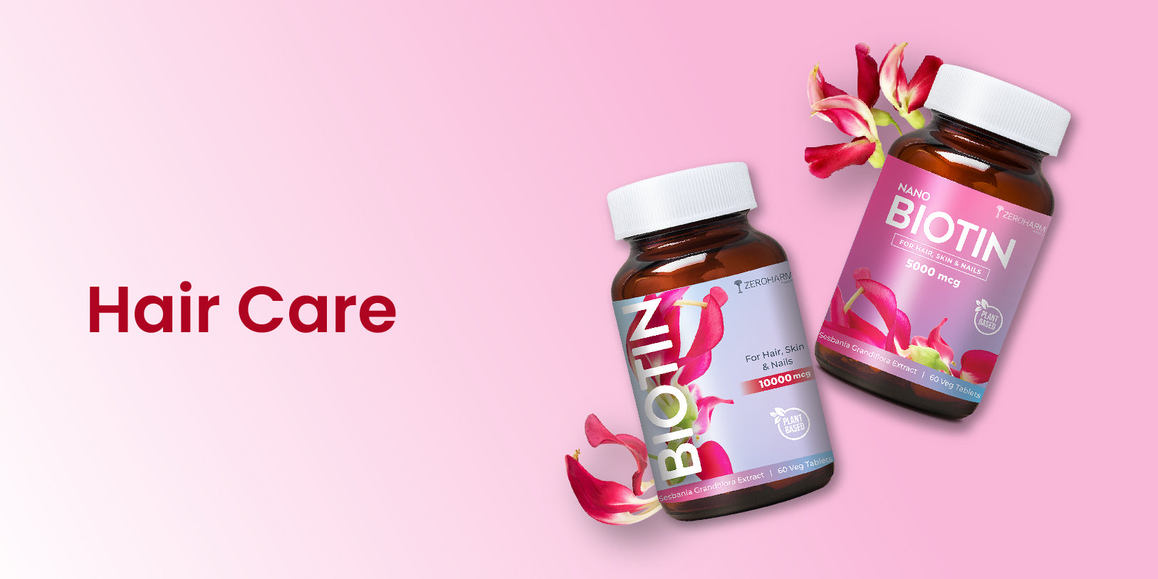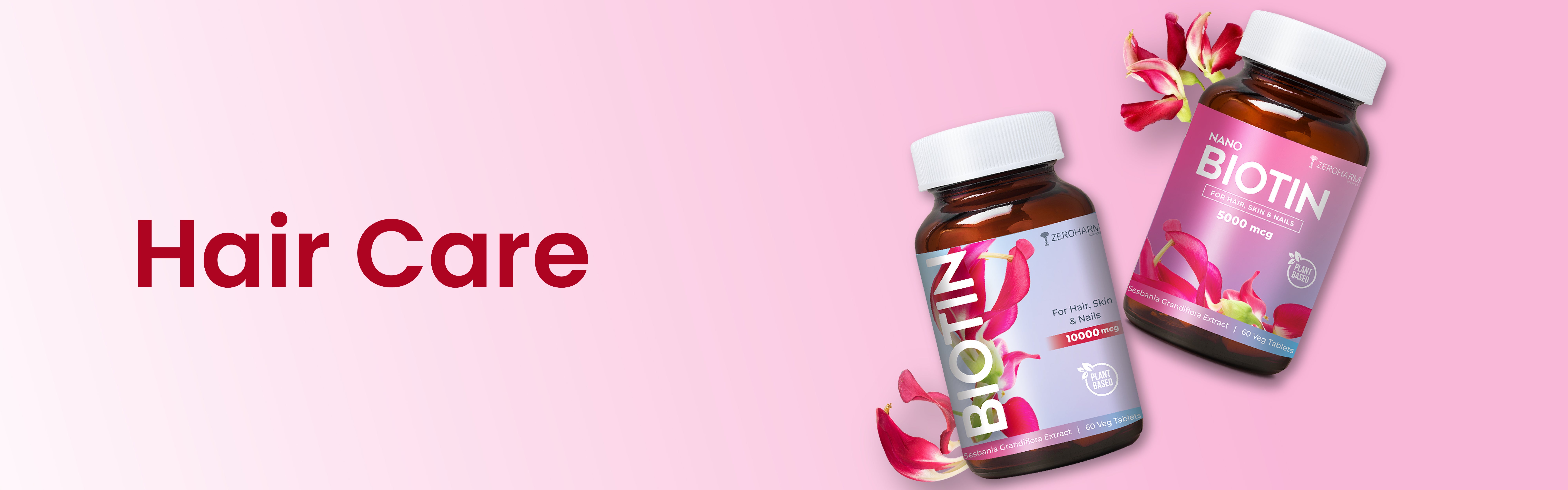 ZeroHarm's hair growth supplements provide essential nutrients that nourish hair from within. Our biotin-rich formulas strengthen hair follicles, reduce hair fall, and promote healthy growth while also benefiting skin and nail health for comprehensive beauty support.