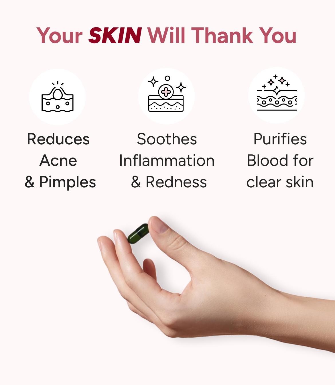 Blood Purifis is a 100% Ayurvedic capsule made from 6 powerful herbs that purify the blood, flush out toxins, and target the root cause of pimples and acne.