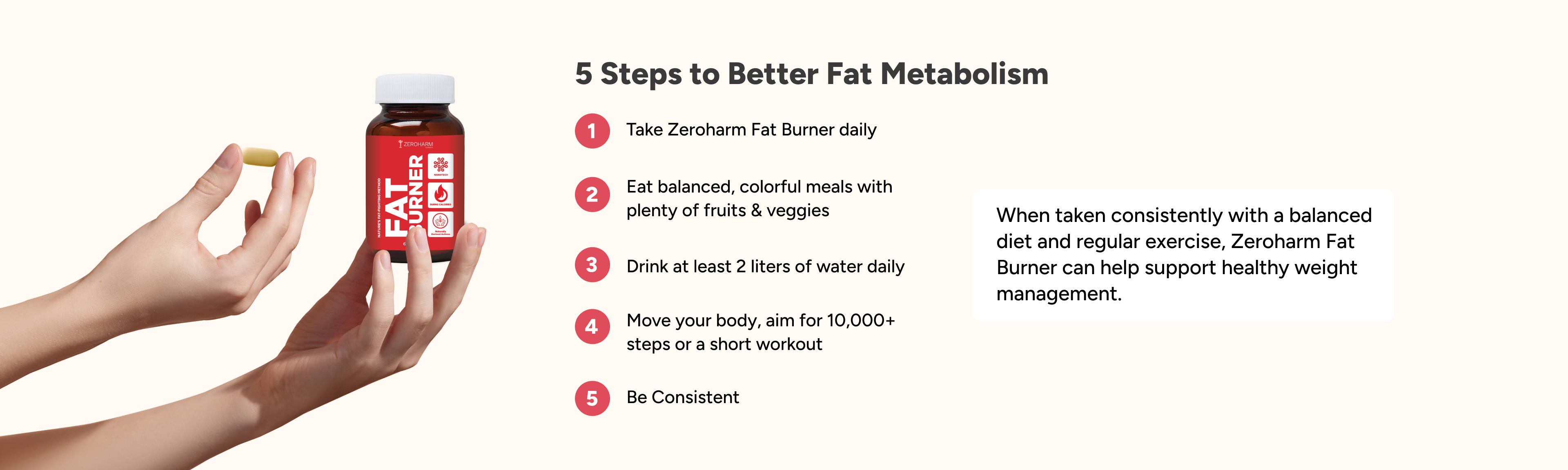 Sustaining your weight loss after stopping the ZeroHarm Fat Burner involves maintaining a healthy lifestyle. We advise continuing with a balanced diet and regular exercise to preserve your results. While stopping the supplement itself does not directly lead to weight gain, lifestyle choices play a crucial role in managing your weight long-term.