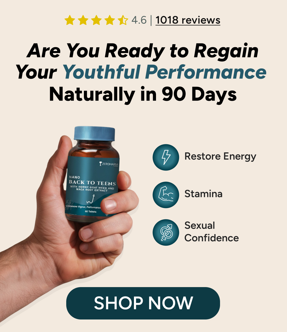 Back To Teens Tablets are natural performance-boosting supplements made with Horny Goat Weed, Maca Root, and Safed Musli. They help improve libido, energy, stamina, and overall vitality, while also supporting concerns like erectile dysfunction (ED) and premature ejaculation (PE). Trusted by 15,000+ customers, Back To Teens is designed exclusively for men.